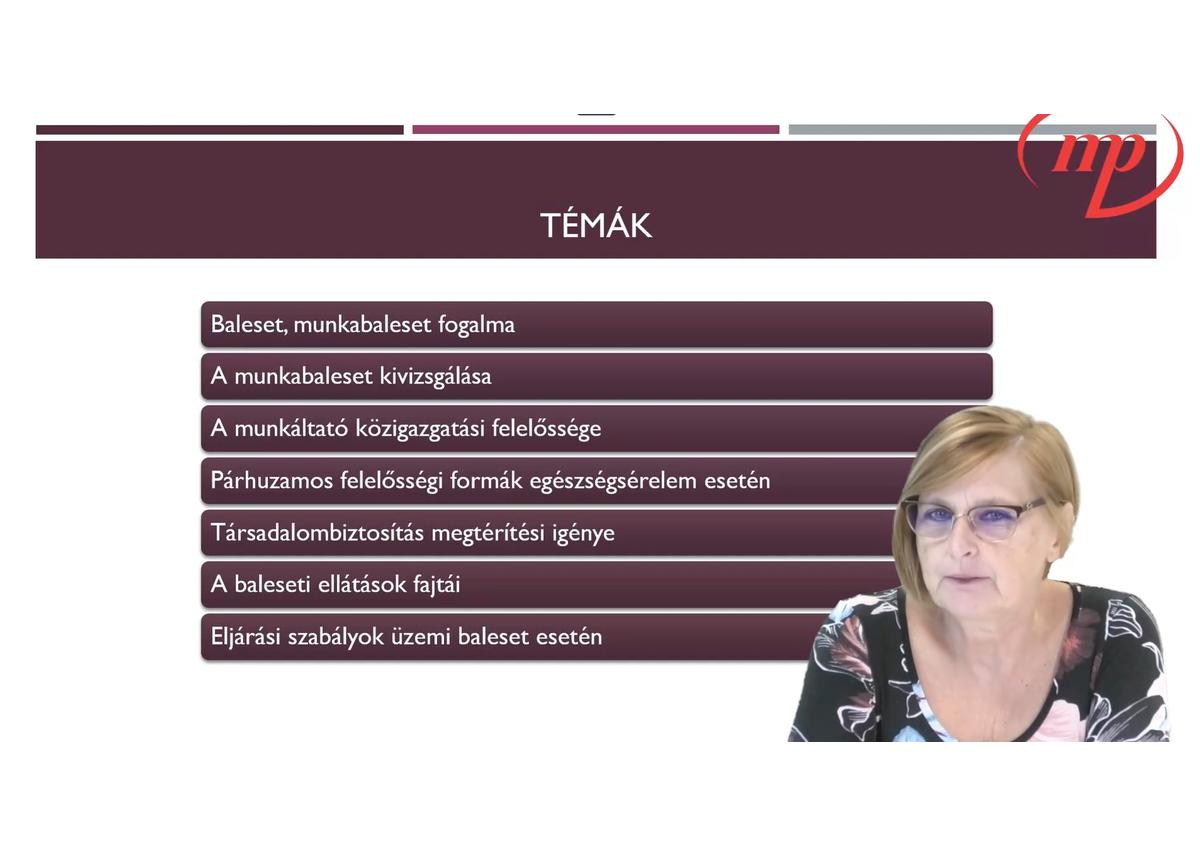 Egy munkabaleset következményei több jogterületet is érinthetnek: a munkáltatóval szemben közigazgatási, kártérítési és büntetőjogi felelősség is felmerülhet, továbbá a társadalombiztosítás megtérítési igénnyel élhet. A szemléltetéshez Dr. Dudás Katalin egy olyan esetet említett, amikor egy munkavállaló a munkaterületen megcsúszott, és sérülést szenvedett, a kivizsgálás pedig feltárta, hogy a padlóburkolat nem volt csúszásmentesített, és a megelőző intézkedések hiányoztak. Az eset egyértelműen megmutatta, hogy a munkabalesetek ok-okozati láncolatában a munkáltató megelőzési kötelezettségének elmulasztása önálló felelősségi tényezőként értékelendő, amelyet a munkavállaló közrehatása sem zárhat ki.